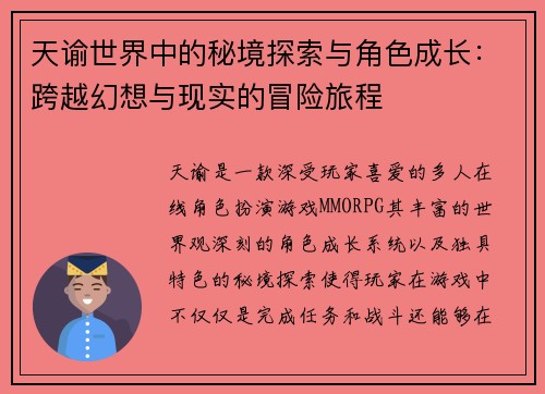 天谕世界中的秘境探索与角色成长:跨越幻想与现实的冒险旅程