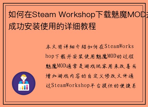如何在Steam Workshop下载魅魔MOD并成功安装使用的详细教程